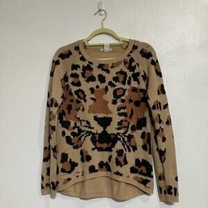 Belle Du Jour Leopard Print High Low Hem Sweater Sz M