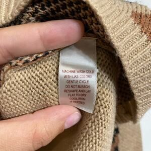 Medium tan, brown and black long sleeve sweater by Belle Dee Jour in excellent preowned condition.