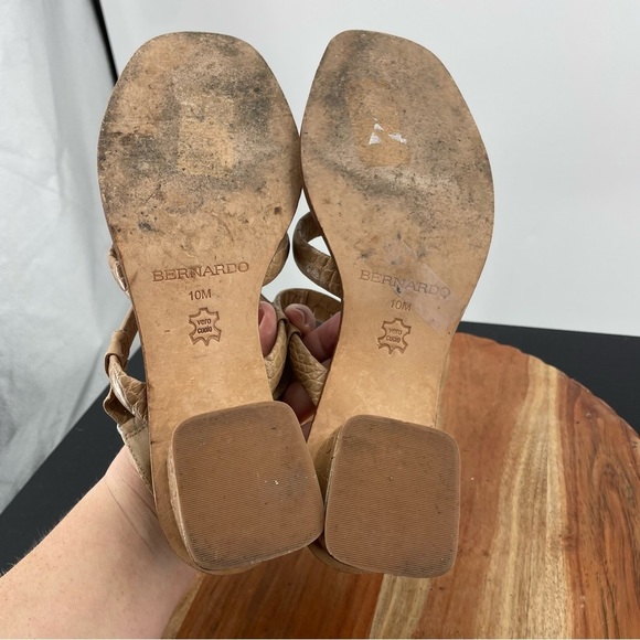 Bernardo Britney slingback Block Heels Sandals Sz 10 croc embossed leather tan