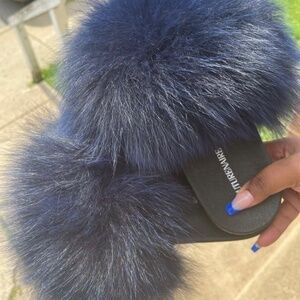 ** **Real Fur Slides - Open Toe, Comfortable, and Stylish** Introducing our Real Fur Slides, designed with an open toe for easy wear, and a cute, fluffy appearance. These sandals feature a soft, comfortable, and durable rubber sole with a non-slip design, measuring approximately 1" in height. **Versatile Wear** The open toe style allows for convenient use at any time or place. Perfect for indoor use as cozy slippers or for outdoor wear during spring, summer, autumn, and even winter (not recommended for snow). **Ideal for Various Occasions** Our luxurious fur slides offer the best of both worlds, providing comfort and style whether you're at home or out and about. These brand-new slides are in stock and ready for immediate shipment, pickup, or delivery. We ensure a quick turnaround, with shipping within 2-3 days. True to size.