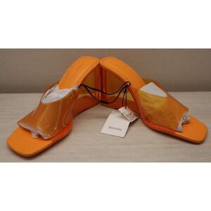 Bershka Women's Sz 9 Bright Orange Clear Detail  Square Toe Wedge Mules