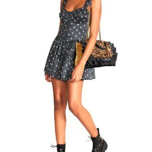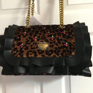 From Betsey Johnson, the Ruffle Flap Leopard Rhinestones Shoulder Bag features: