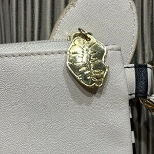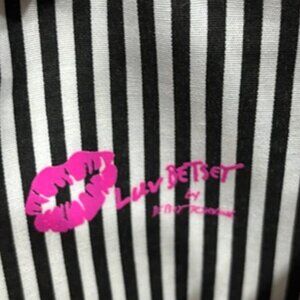 Luv Betsey Johnson Rabbit Bunny Large Wristlet Pouch Travel Cosmetic Bag Sweet sleeping bunny face with ears. Black and white trim. Black and white striped interior lining. Excellent used condition. No callouts.