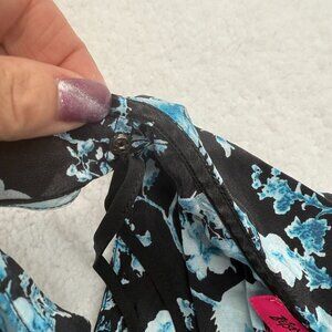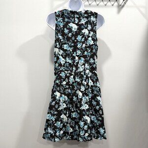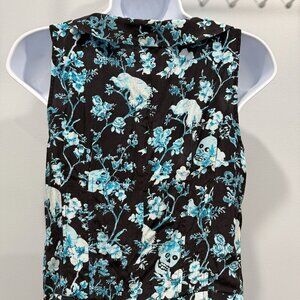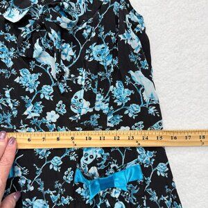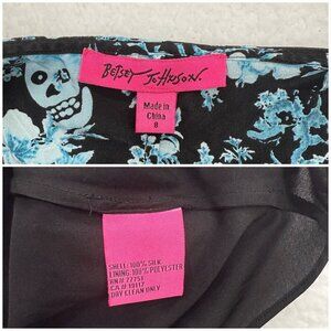 Description: Betsey Johnson Silk Skull Floral Bird Print Dress Black Blue Whimsigoth Y2K 90s SZ 8