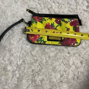 Betsey Johnson Vibrant yellow, pink & green Floral sequins Wristlet .