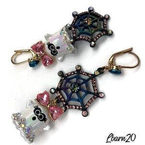 Gorgeous white holographically painted ghost earrings paired with black matte and jeweled spider webs. This are an adorable pair of earrings, and a personal fav. There are more Betsey Johnson Halloween pieces available in my closet!