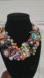 Dazzling necklace with vibrant crystals. Features purple, green, and gold tones. Adds sparkle to any look.