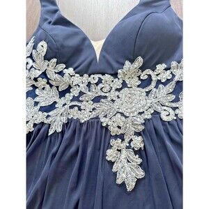 Betsy & Adam Women's Embroidered-Waist Sheath Party Maxi Dress Gown SilverNavy 2