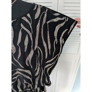Beverly Drive Peplum Top Womens 3X Gold Sequined Tiger Pattern Black Blouse Glam