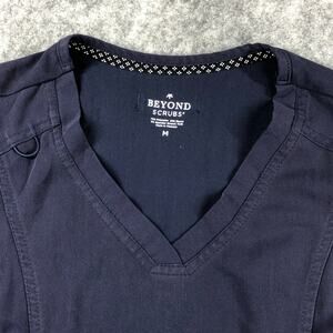 Beyond Scrubs Top Womens Medium Navy Blue V Neck 2 Pocket Stretch Style 5100SB