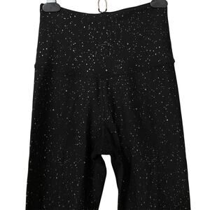 -"Shine on in Beyond Yoga's high waisted midi made of Sport Flex performance fabric with 4-way stretch and an ombre speckled motif made from a metallic foil. The technical qualities of this fabric adopts a luxe element with futuristic shine through the foil coating."