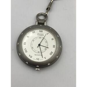 Bijoux Turner Open Face Quartz Pocket Watch with 12" Chain - Clip - New Battery
