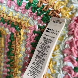 Vibrant beach vibe with the Billabong tote bag, featuring a delightful mix of pink, green, white, tan and yellow stripes. Crafted from a textured material, this tote offers a spacious interior and sturdy handles, perfect for farmers market, casual outings. Its natural, woven design adds a touch of laid-back elegance to any ensemble.