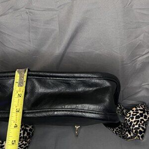Black Crossbody Bag w/Leopard Print Strap, EUC