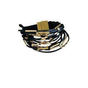 Black & Gold Boho Faux Leather Bracelet w/ Magentic Clasp