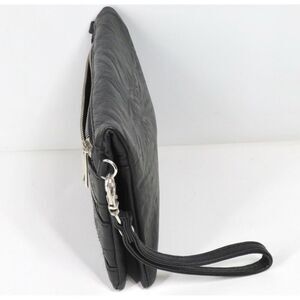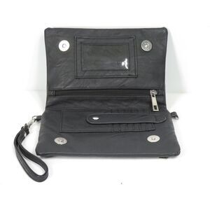 Black Leather Triple Zip Bifold Wristlet Wallet