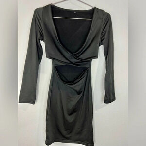 🆕 Black Long Sleeve Wrap Front Dress with Waist Peak a boo