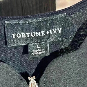 Black Sexy A-Line Scalloped Scoop Zip Neck Blouse by Fortune Ivy Womens Sz L