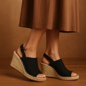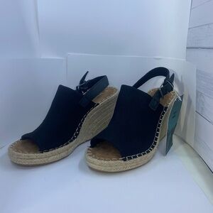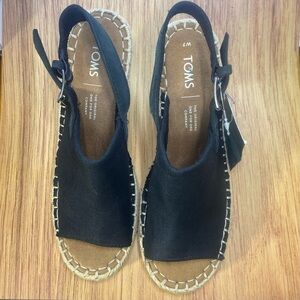 Black Tom’s Espadrille Wedge Shoes with Slingback Size 7W