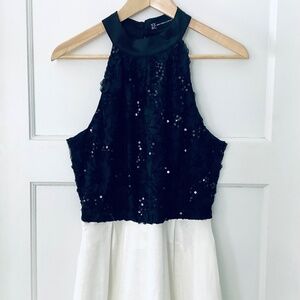Black & White 3D Sequin Applique Taffeta Fit & Flare Dress Size S Halter Party