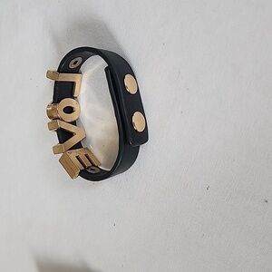 This striking bracelet features a bold 'LOVE' design in gold lettering on a sleek black band. The snap closure with gold-toned studs adds a touch of elegance, making it a perfect statement piece for any occasion.