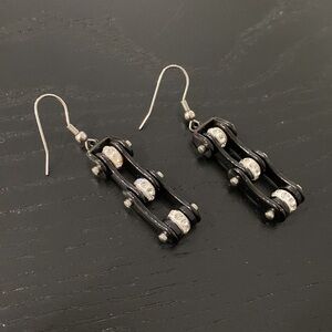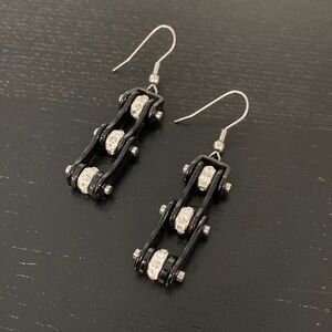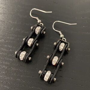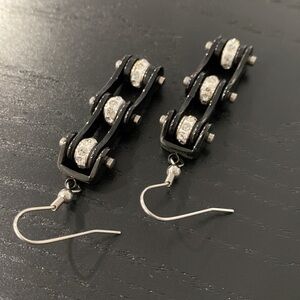 Black and Silver Bike Chain Stainless Steel Earrings with stones. Never been worn, no flaws, no signs of use.