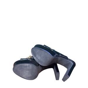 These heels are a size 9 and feature a sleek, patent leather finish that catches the eye. The platform design ensures comfort while providing extra height.