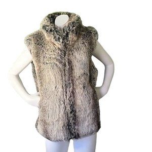 Blassport Reversible Womens Faux Fur Vest Zip Closure Tan Black Brown Size Small