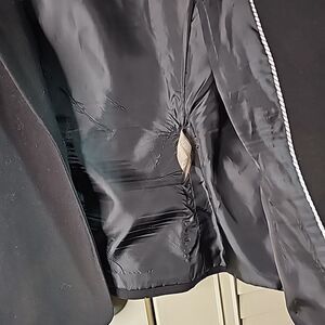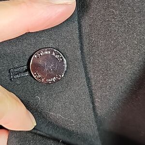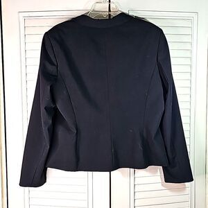 Blazer by Calvin klein Black Fully Lined Size 16, pit to pit 23", length 24.5", sleeve 25", 2 front slip pockets on right front, 1 slip pocket on front left side, shoulder pads, in good condition.