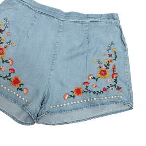 Blue Rain by Francesca’s Embroidered Chambray Shorts – Floral Boho Design Size L