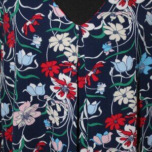 Bobeau Navy Floral Long Sleeve and V-neck Top