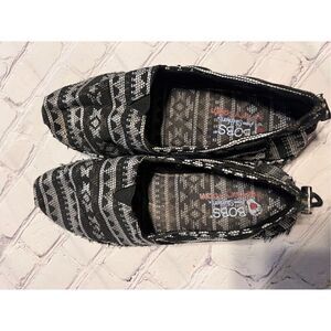 Bobs Womens Size 9 Canvas Slip On Shoe Black Dot Print Southwestern Aztec Tribal