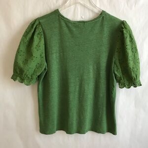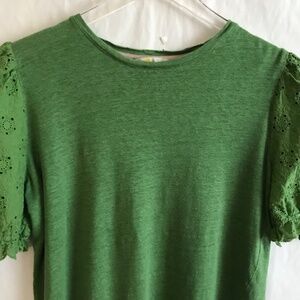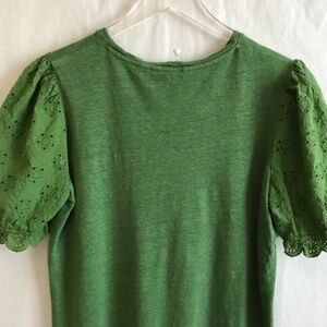 Boden 100% Linen Broderie Eyelet Puff Sleeve Tee Top US 8/UK 12 Kelly Green NWOT