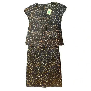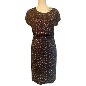 This chic Boden women’s 2-piece set includes a stylish blouse and a coordinating pencil skirt, both in a bold navy and brown abstract animal print. Designed for versatility, you can wear them together for a polished dress-like look, or mix and match with other wardrobe staples. Appears as a sheath shift dress when worn together