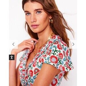 This Boden Nicola Floral Print Jersey Tea Dress is a stylish British-inspired piece perfect for petite women. The ruffle accents and V-neckline add a touch of elegance to the maxi dress, which features a vibrant multicolor floral pattern. With its belted waist and long length, this dress is both comfortable and flattering, making it a versatile addition to any wardrobe. Perfect for a casual day out or a more dressed-up occasion, this dress combines classic elements with trendy accents for a chic look.