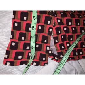 This Boden dress features a pink and brown geometric pattern with a collared neckline and button-down closure. Made of viscose jersey material, the knee-length dress has long sleeves with casual styling and comes with a belt for a classic look. Ideal for travel, casual outings, or business settings, this dress is machine washable and suitable for winter, summer, fall, and spring seasons.