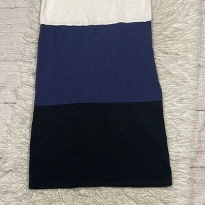 Boden slub colorblock white, black, and navy colored striped crewneck T-shirt dress. This dress is a long fit and is in great used condition