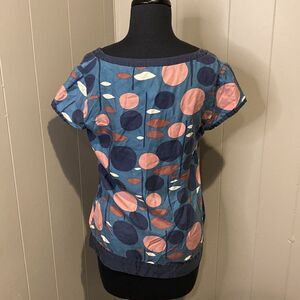 Boden Size 12 T Shirt Wide Neck Short Sleeve Abstract Floral Polka Dot