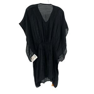 Bohemian Beaded Blouse Black V Neck Dolman Sleeve One Size Beach Tunic LOF NEW