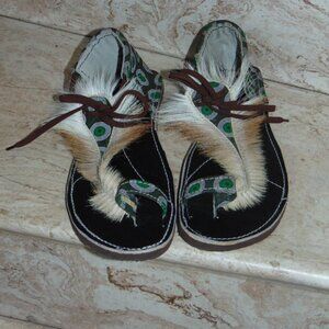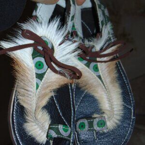 Boho Hippie African Springbok Fur Hide Zulu Imbadada Leather Batik Sandals Women