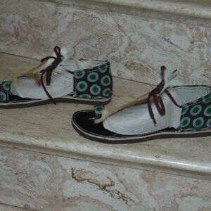 Boho Hippie African Springbok Fur Hide Zulu Imbadada Leather Batik Wearable Art Native Folk Sandals Women's