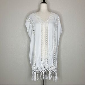 Boho Me White Eyelet Crochet Fringe CoverUp