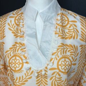 Make a statement in this vibrant yellow and white tunic dress, perfect for beach days, brunch, or summer vacations! Featuring a bold floral and geometric print, this dress combines boho charm with a chic tailored silhouette. Dry cleaned and ready for wear!