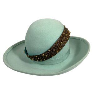 Bollman 'Excello' Pure Wool Womens Breton Hat Feather Band Foam Green Mr John