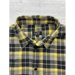 Boohoo Man Shirt Large Yellow Black Plaid Long Sleeve Button Up Smile Emoji. preowned see all photos for details and measurements all measurements taken laying flat