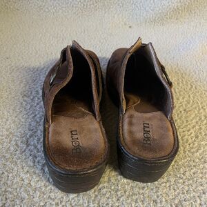 Born Leather Womens Shoes 8 Brown Mules Slip On Wedge Heel