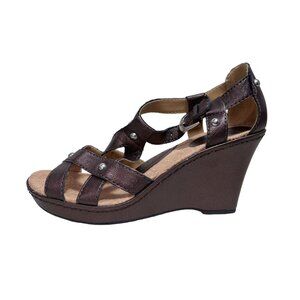 Born Women's Leather Studded Ankle Strap Wedge Sandals in Brown - Sz 9 (40.5)