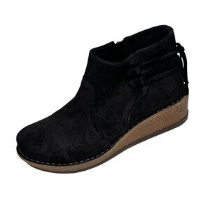 Born Women's Viana Black Distressed Suede Wedge Ankle Zip Booties Size 9 NEW