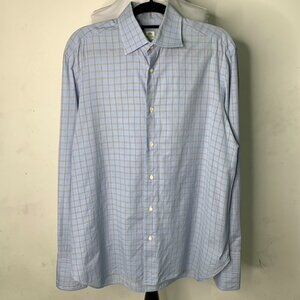 Borrelli Napoli Men's Blue Plaid Long Sleeve Button Down Shirt Size 15 1/2