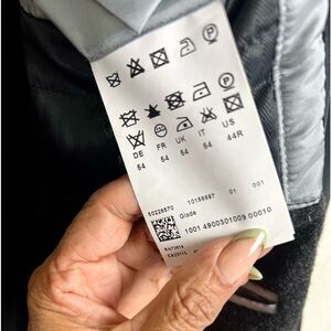 In excellent used condition Boss Hugo Boss fully lined, non removable hooded coat. Coat features zip and toggle closure with zip and snap closure at neck. This is a staple piece to own for those wet, cold days.